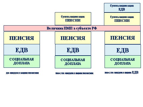 Таким образом, суммы индексаций текущего года будут выплачиваться сверх установленной в субъекте Российской Федерации величины прожиточного минимума пенсионера (ПМП).